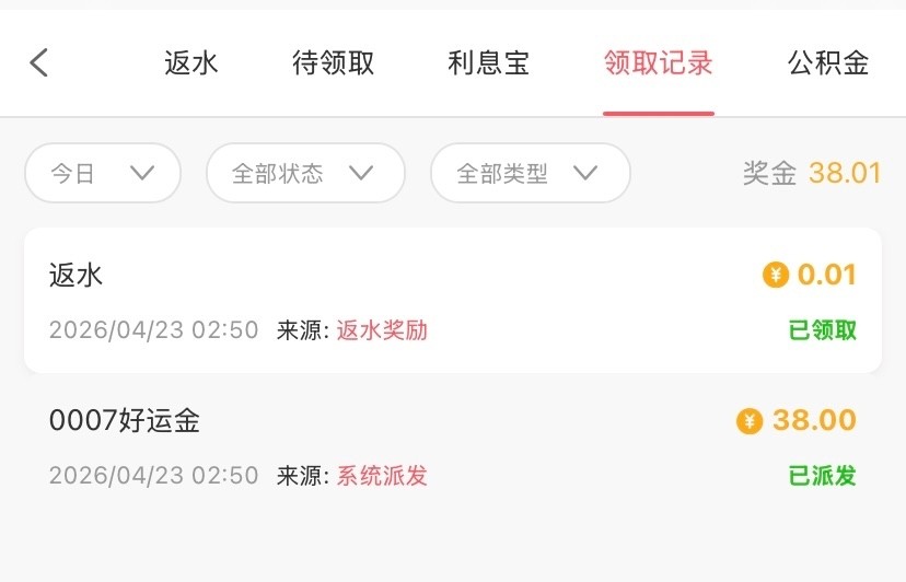 有历史充值过可以登入查看优惠-待领取里有没有收到此彩金