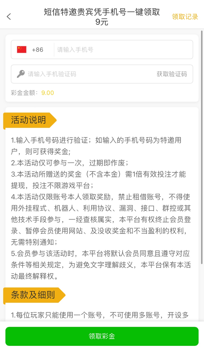 短信特邀碰瓷注册好优惠里自助领取