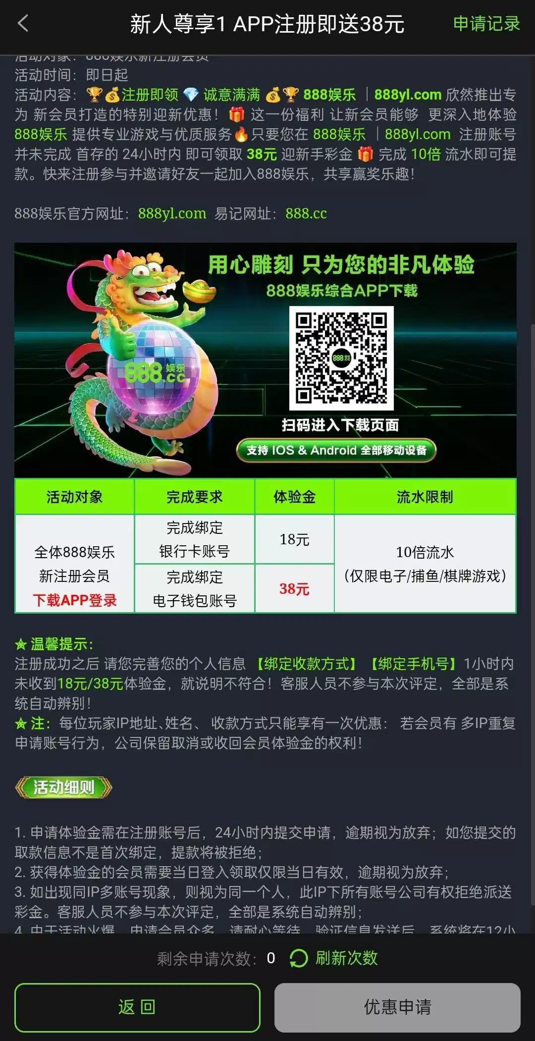 注册下载APP完善绑定优惠里申请彩金,10倍流水
